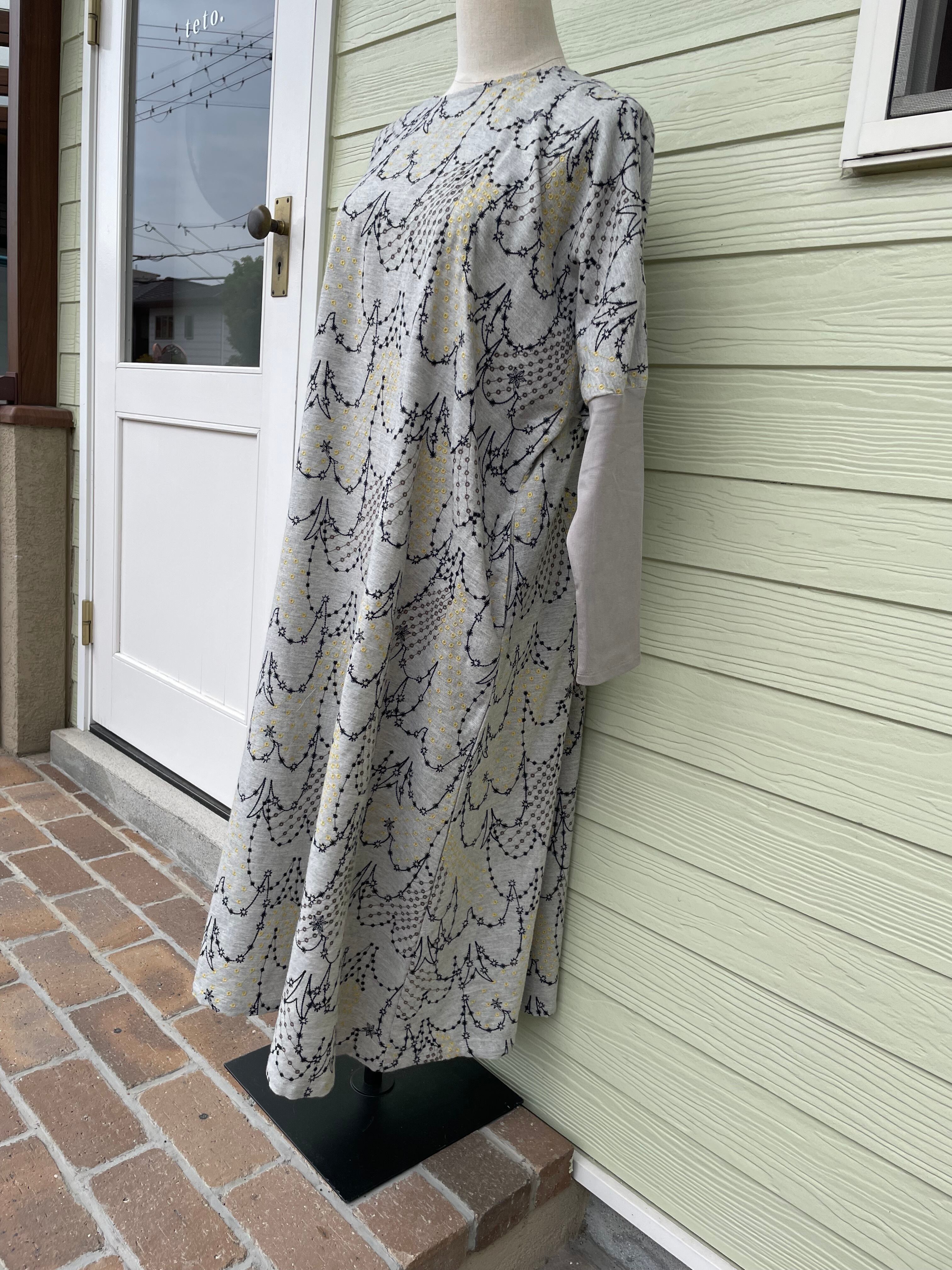 袖口の長いリブがアクセントになるフレアワンピース。