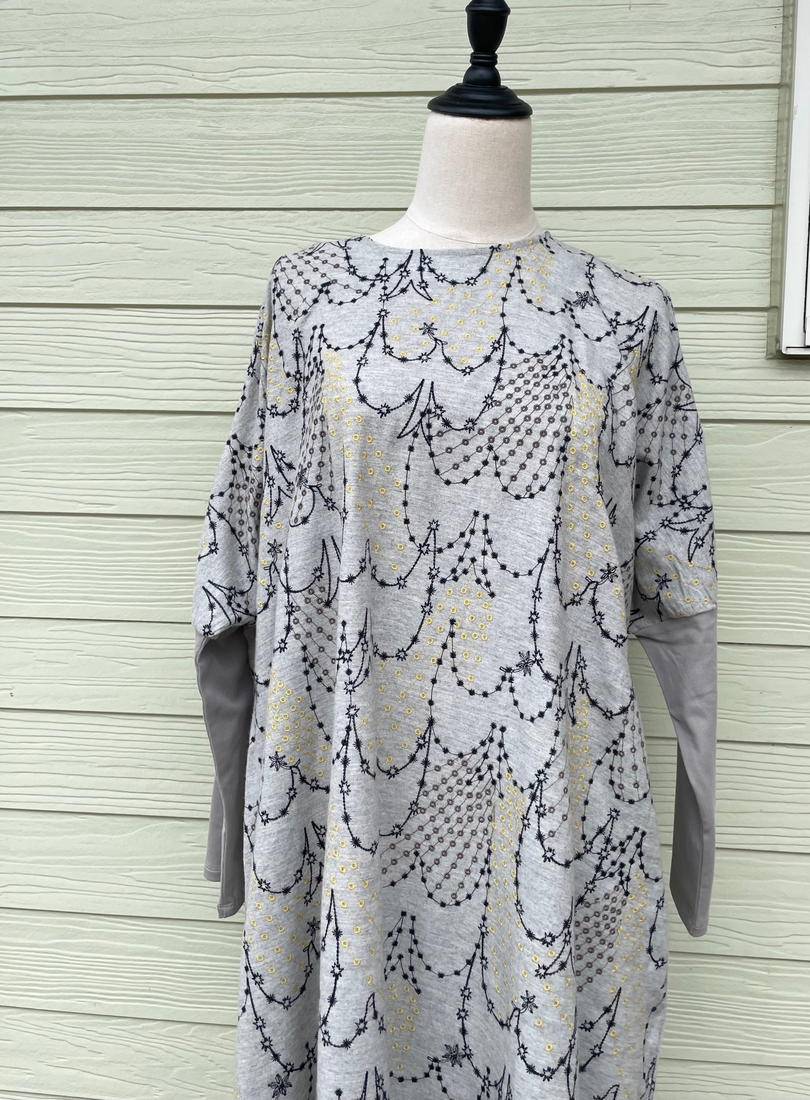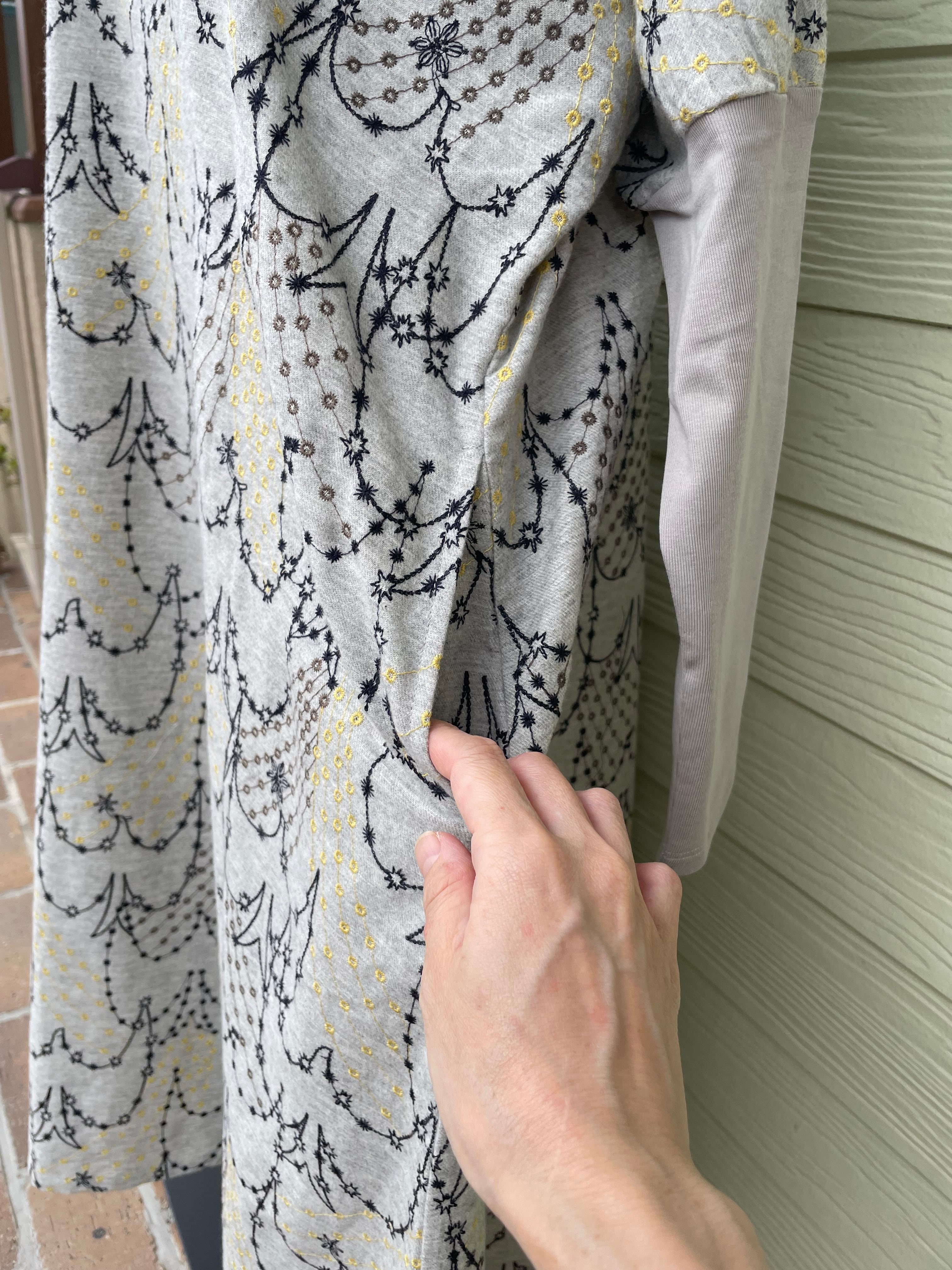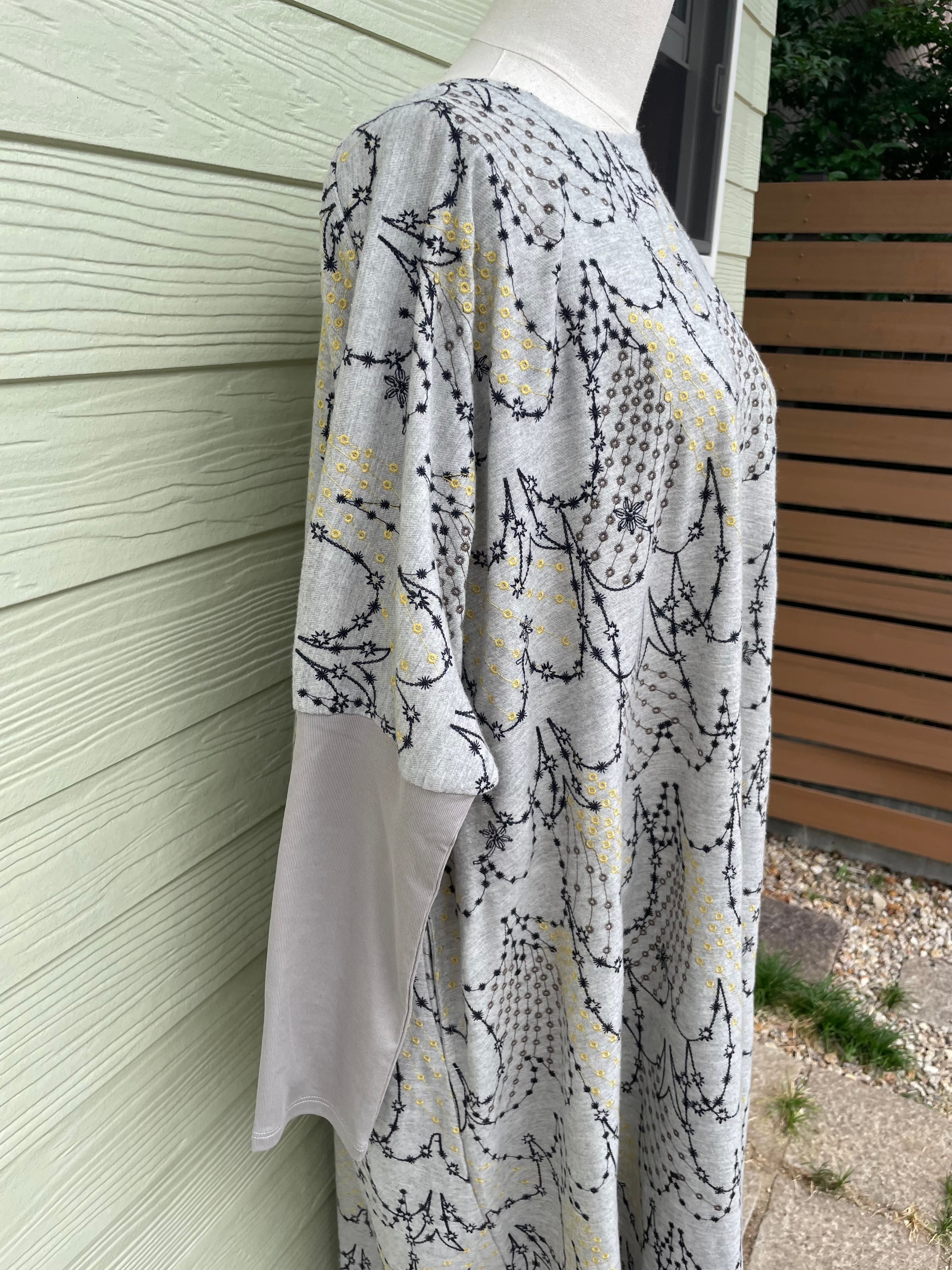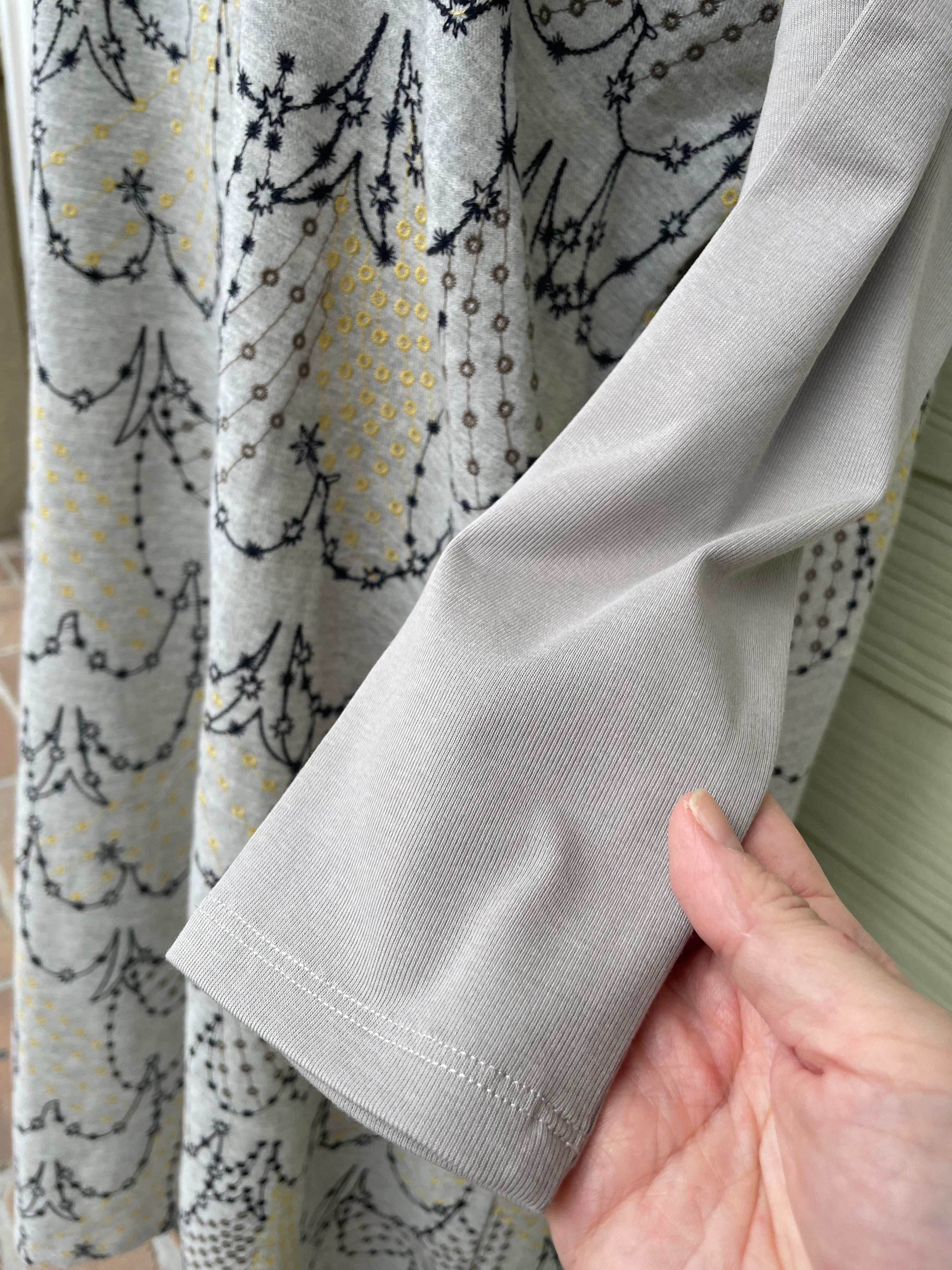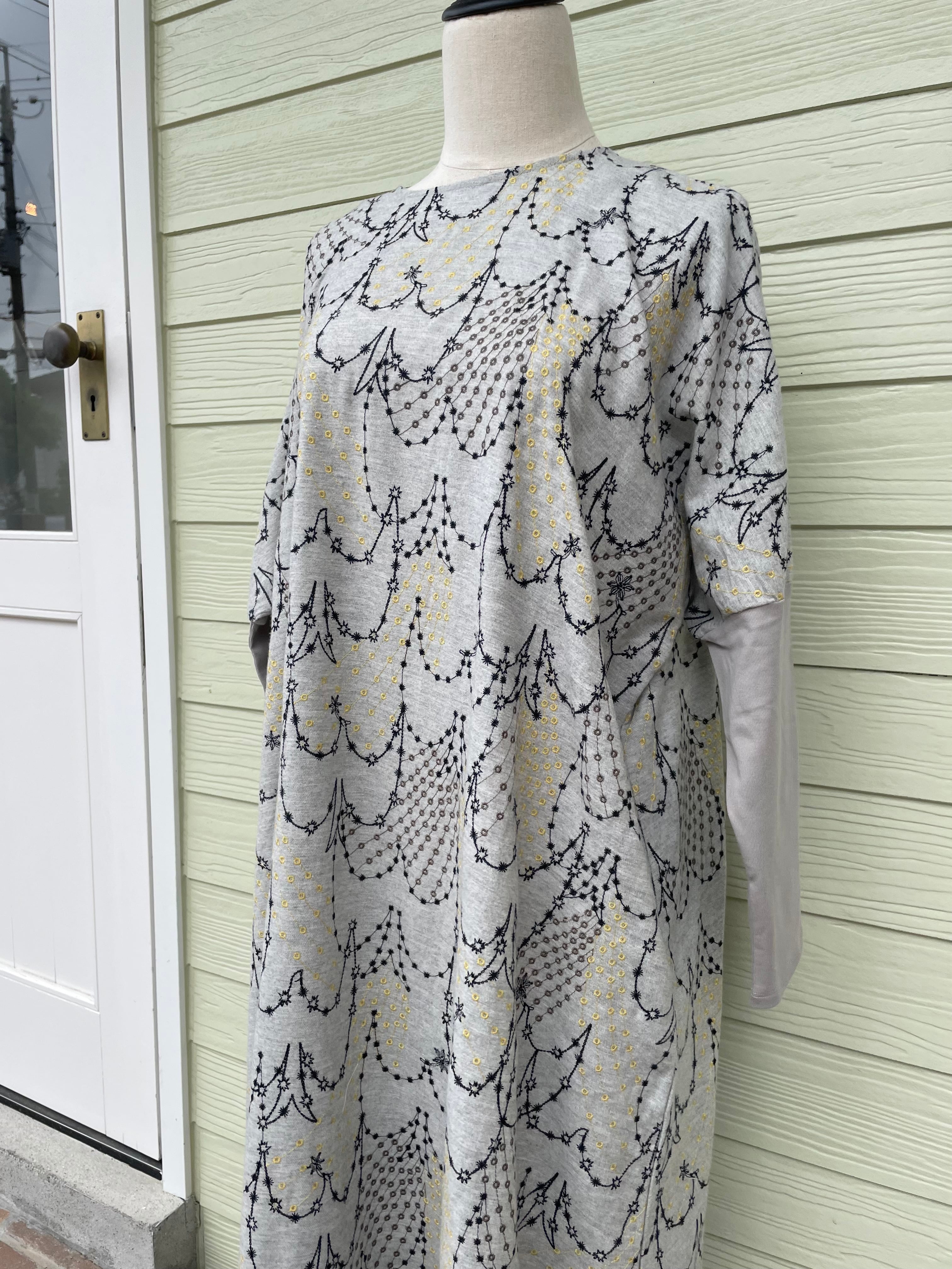流れ星でツバメのかたちを表現している、どこか幻想的で繊細な刺繍のテキスタイル。