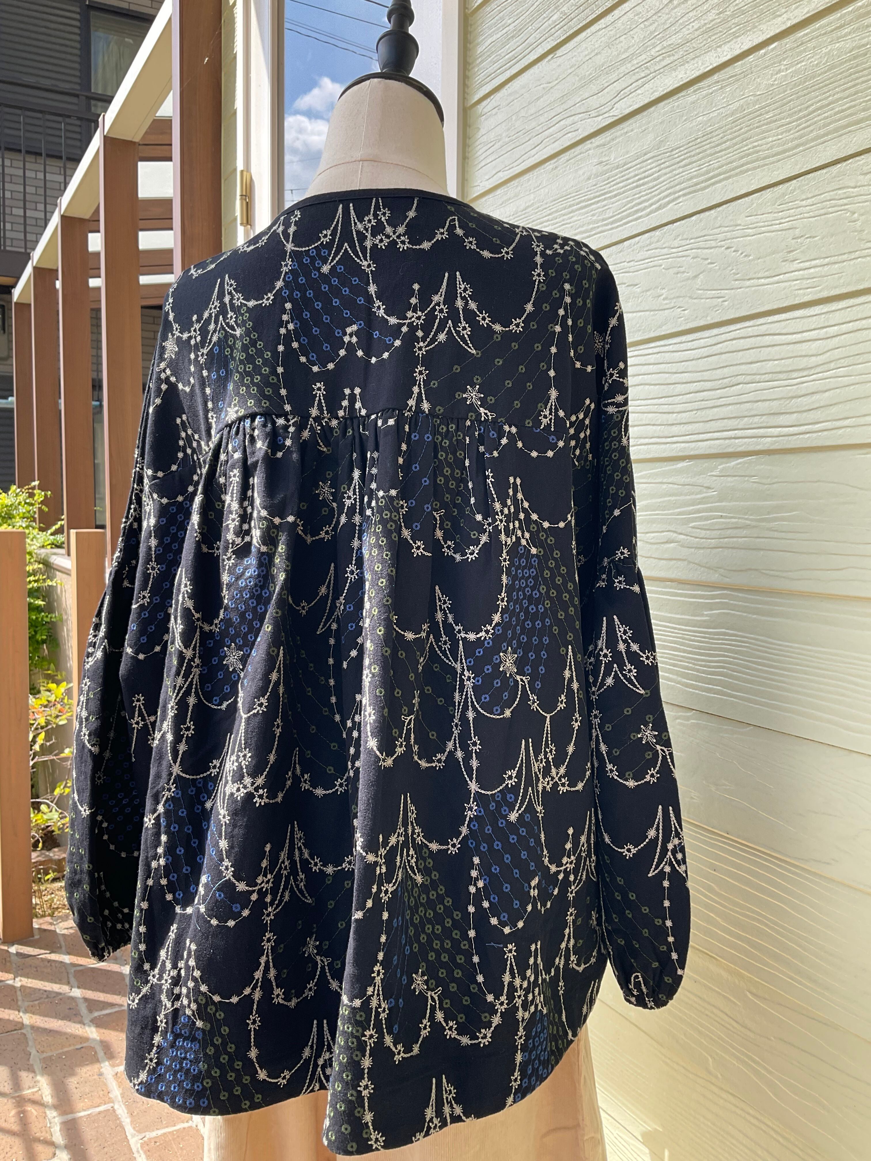 ツバメは古くから人の側で巣を作り共生してきた、幸運を象徴する渡り鳥です。キラキラとした星のシャワーを表現した、どこか幻想的で繊細な刺繍のテキスタイル。