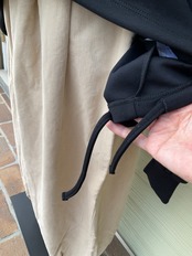 シンプルなワイドシルエットに裾を前後ラウンドさせスピンドルを通し、
